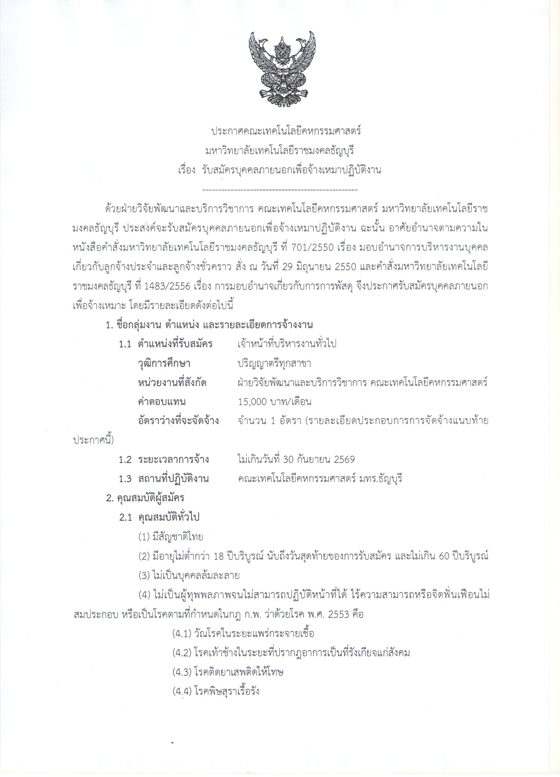RMUTT EXPO 2025กันยายน 2, 2025“แสงสุดท้ายที่เปล่งประกายตลอดไป” ประจำปี 2568กันยายน 24, 2025 Published by Prompong Tongjumrern on กันยายน 5, 2025 Categories ข่าวประชาสัมพันธ์ รับสมัครงาน Tags Share0 Prompong Tongjumrern Related postsพฤศจิกายน 17, 2025โครงการปัจฉิมนิเทศและการแสดงนิทรรศการ “การประกวดโครงการสหกิจศึกษาดีเด่น”Read moreพฤศจิกายน 7, 2025คณะกรรมการตรวจประเมินคุณภาพการศึกษาภายในตามเกณฑ์คุณภาพการศึกษาเพื่อการดำเนินการที่เป็นเลิศ (EdPEx)Read moreพฤศจิกายน 3, 2025แสดงความยินดีกับอาจารย์ที่ได้รับแต่งตั้งให้ดำรงตำแหน่ง ผู้ช่วยศาสตราจารย์Read more Comments are closed.